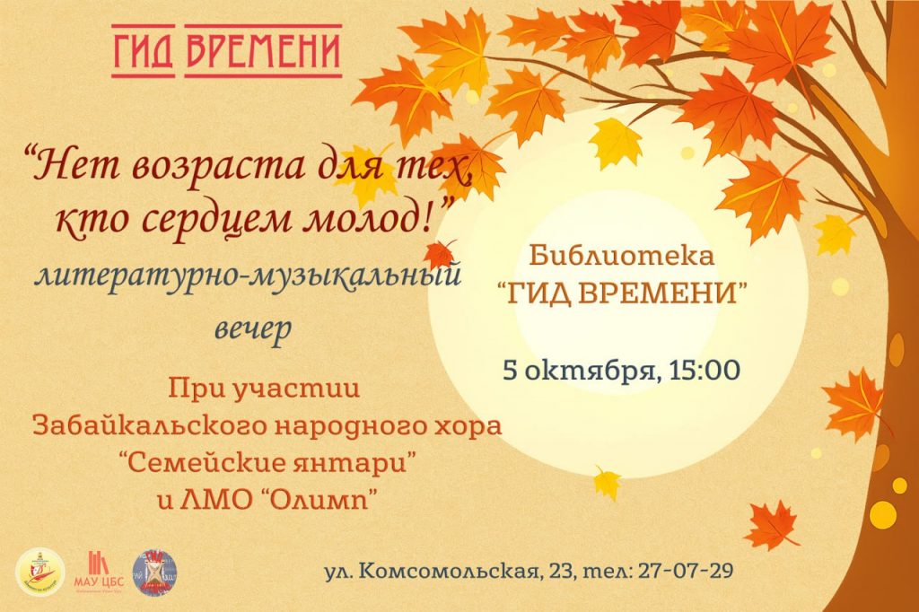 Литературно-музыкальный вечер «Нет возраста у тех, кто сердцем молод! » пройдет в Библиотеке «Гид Времени»